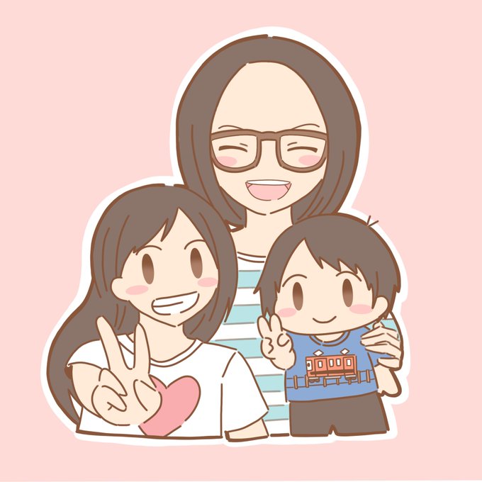 ちよたさん(@chiyota66)に、イラストを描いて頂きました😆私と、子ども達✨