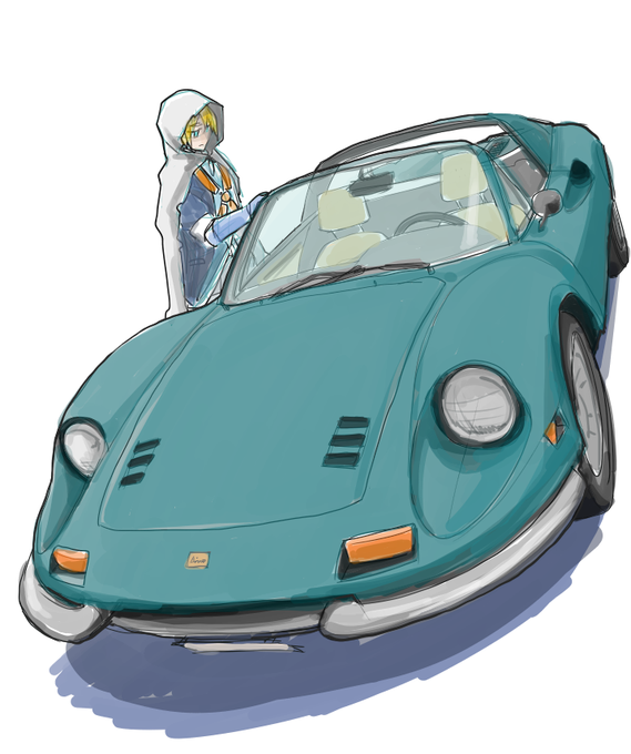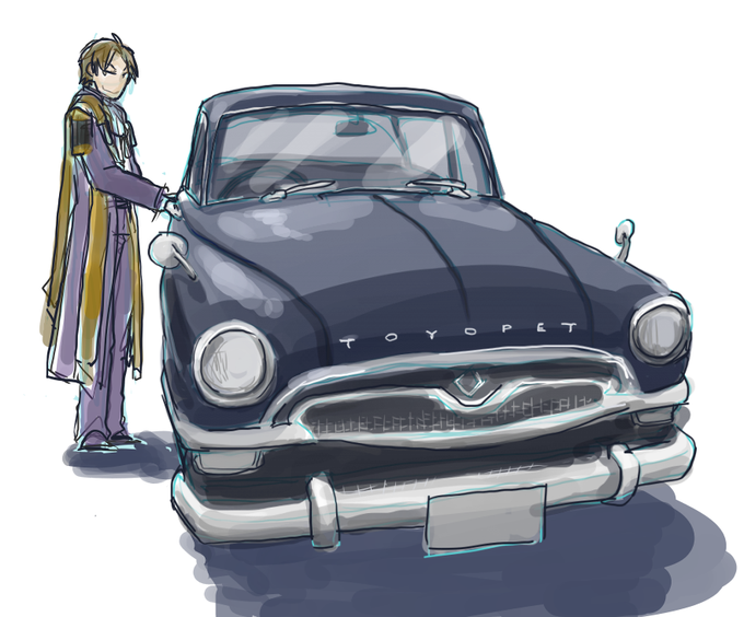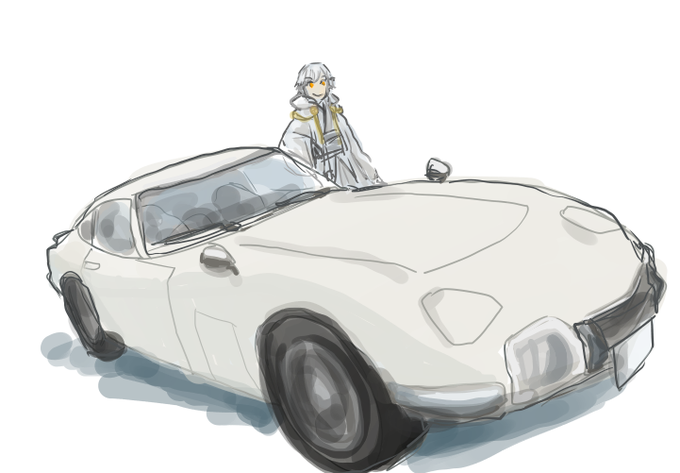 @toukenTL 突然「鶴丸師匠はトヨタ2000GT似合いそう」と思い立ち、手持ち写真ざっとトレスして隣に置いたら案の定似合った。