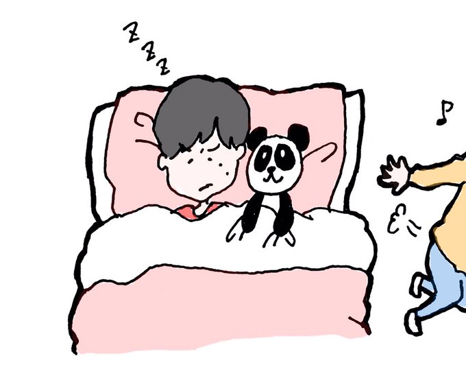 寝ている剛くんの隣に お気に入りのぬいぐるみを置いて 添い寝させる健くん。