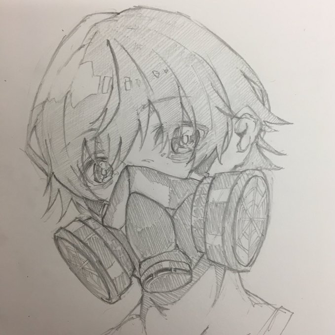 今日学校で最近はまってる曲の影響で無性にガスマスクが書きたくなって書いてました… iPhoneでとって少し手加えただけですが…