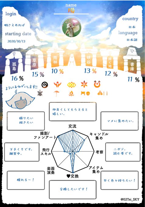 sky始めたばっかりですよろしくお願いしますー! #sky星を紡ぐ子供たち #sky自己紹介カード #skyフレンド募集 #sky好きさんと繋がりたい