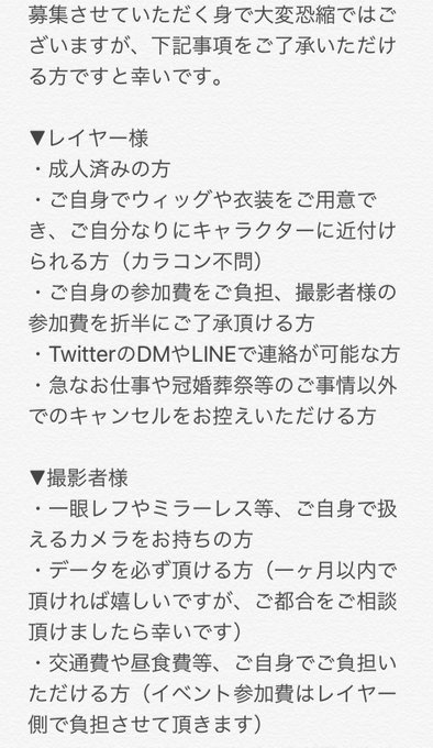 【レイヤー様・撮影者様 募集】 7/7(日)に、ヒプノシスマイク TDD併せをするに辺り、メンバー・撮影者様を募集しております🙇♂️ 場所は大阪府 コスモタワーになります! 詳細は添付画像をご確認下さい🙇♂️ フォロー外からでもお気軽にご連絡頂けましたら嬉しいです☺️🌸 #併せ募集 #カメラマン募集