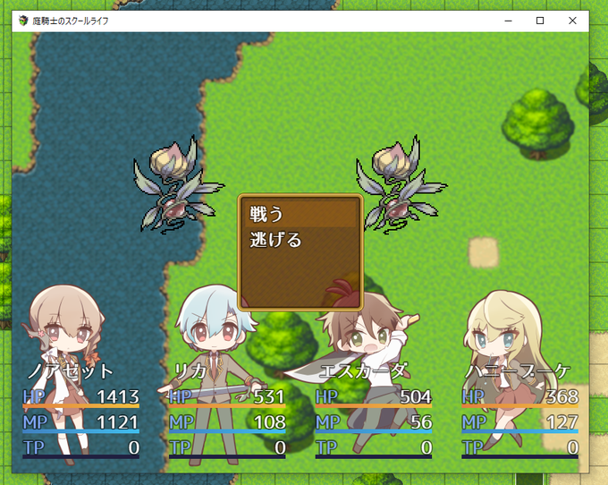 プラグインをお借りしてタイトル画面を作りました! 次はずっと目を背けていた立ち絵の作業に取り掛かる予定です ずっと絵の作業のターン… #プレミアムツクールデー #庭騎士のスクールライフ