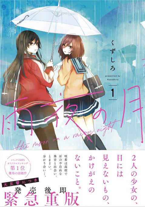 雨夜の月の表紙、咲希ちゃんと奏音ちゃんの距離が確実に近づいていること、咲希→奏音の気持ちの変遷が見られること、4巻にして奏音ちゃんがしっかり咲希ちゃんを見ていること、そして2人とも笑顔であること、全てが詰まっていて最高です。雨夜の月いいですよ…。読め…。