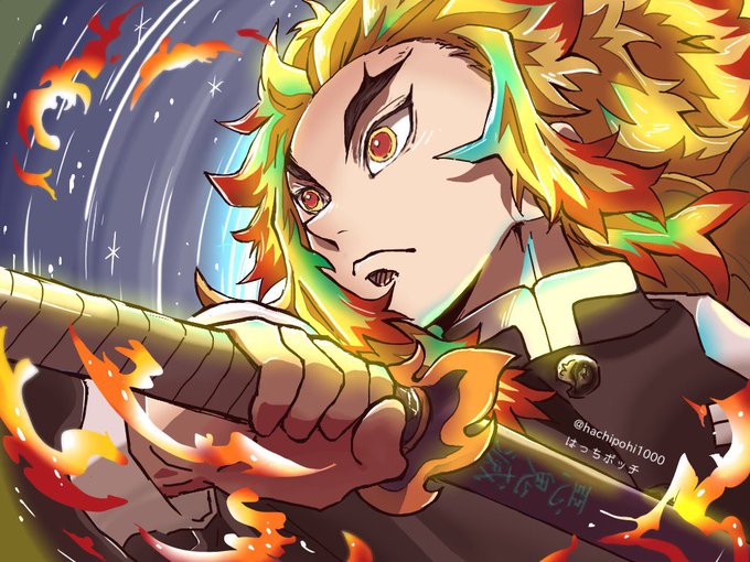 🔥さんの模写。 無限列車みながら、あいてる時間にちまちま描いたせいでめちゃめちゃ時間かかった。 模写をサラサラと似せられる人になりたい