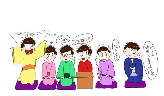 先日観に行った落研の寄席にて 大喜利がどう見てもおそ松だったので描いてみた(一人足りない)
