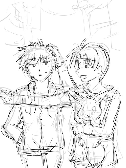 レッドと坊ちゃんコンビと描いてたら、2主とグリーンの組み合わせも描きたいなーとか思い出した。