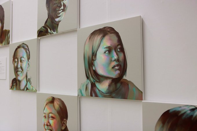 卒展です 貝殻の内側の虹色の光沢を引用し人物画を描きました 卒展ページ https://t.co/0UkYYQD1vI