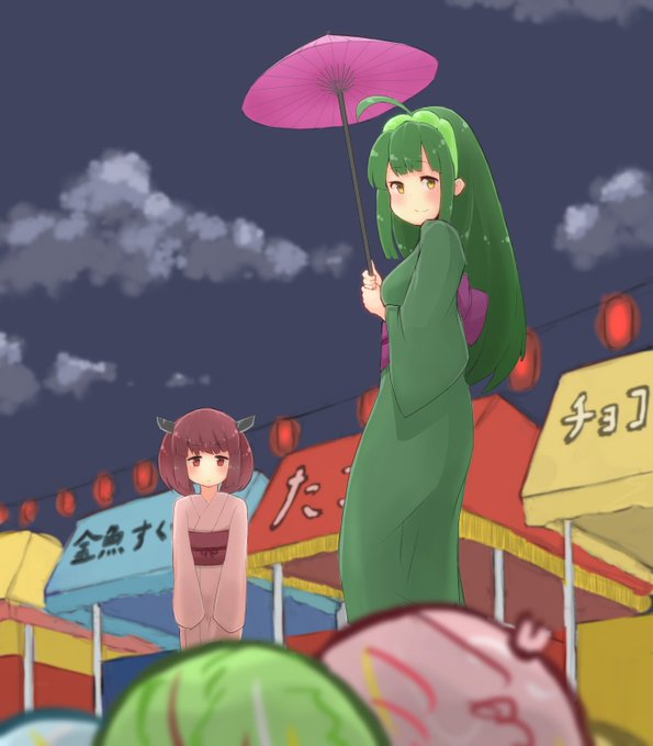 すべりこみ! #文化の日 ということでモネ大先生の「散歩、日傘をさす女」をオマージュして秋祭りに来たずんちゃんときりたんを描きました