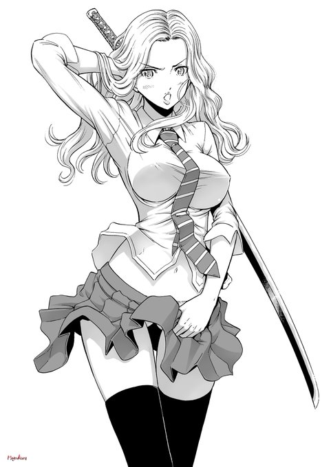 過去絵・日本刀もった金髪の女子高生兄貴 目はキツいの方がカッコいいかもですね #落書き #帯刀