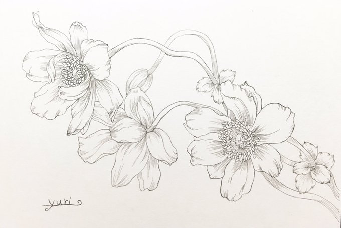 固定用 シュウメイギク ハガキサイズ ペンのみのは一声頂ければ印刷もOKです♡ 塗り絵にどうぞ #ペン画 #色鉛筆