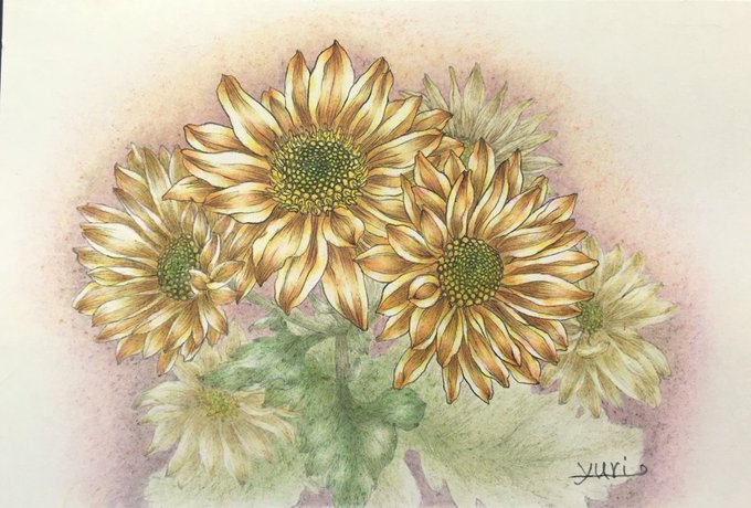 おはようございます 11月に入ってから、調子が悪い日が続いて辛かった~ みなさんのRTや♡で生きてます💕 いつもありがとうございます!! 小菊と言うより中菊 これから背景です #ペン画 #色鉛筆 #線維筋痛症