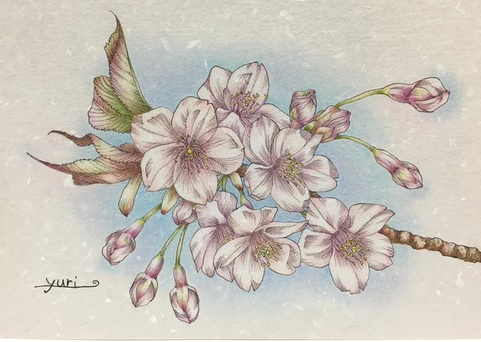 桜完成! 主線はつけペン。着色は水に溶けない色鉛筆。 #桜 #イラスト #ペン #色鉛筆