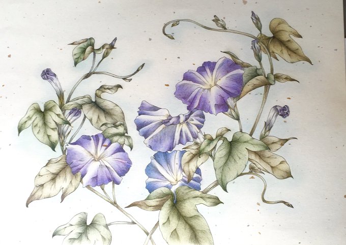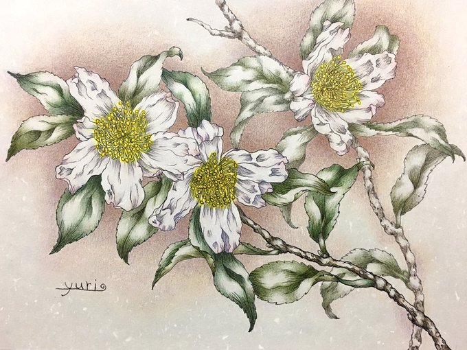 ペンと色鉛筆で お花を描いてます^^