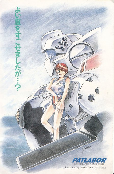 8月10日はパトレイバーの日と言う事で、91年にバンダイから送られてきた残暑見舞い。非常に珍しい、佐山善則氏が描いた水着の野明。っていうか佐山氏が人物を描く事自体珍しい? 時期的に丁度良かったので紹介してみました。 #8月10日はパトレイバーの日