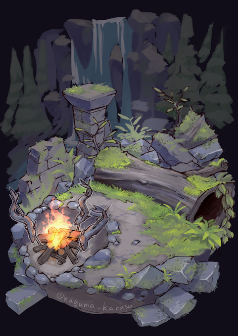 作業経過的なやつ…。 子供の頃に見た作品とかでよく見た焚き火で魚を焼いたり野営するシチュってなんか憧れません…?