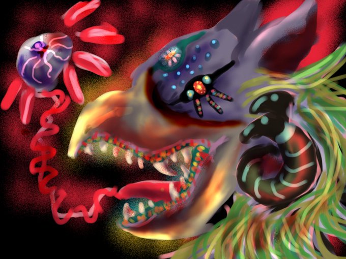 今スマホで描いた、キラキラ目な天線鮫w 鬼律戦の曲が頭に流れてくる #クーロンズゲート #ファイヤの日