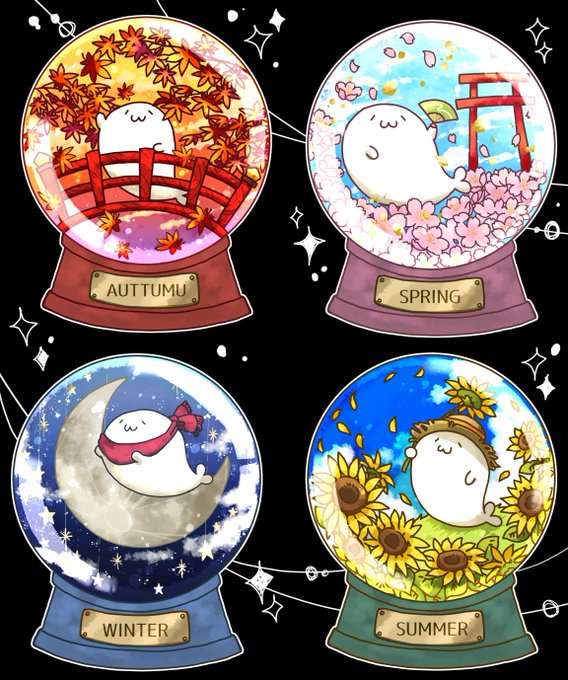 四季のスノードーム(スノーじゃないけど) みんなはどの季節がお好き? #あざらしさん