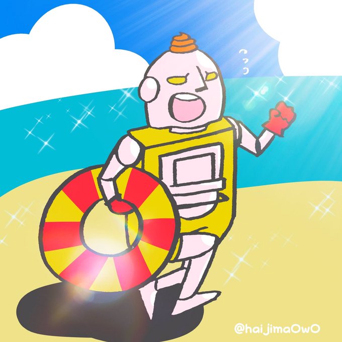 @ENJI_mt 似たような構図ばかり描いていますが… 颯爽と駆けつけるライフセーバー便器超人とても素敵だなと思いました…がんばれ正義超人…⛵️🌊