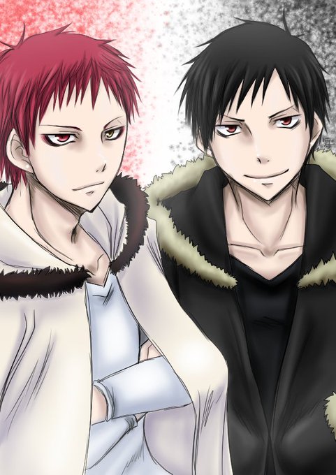 ぐり友からのキリリクで、赤司くんと臨也さん(ФωФ) 赤司氏は初描きです(´・ω・`) でもって、臨也さんと色違いお揃とか着せてしまいました。すみません((((;゜Д゜)))