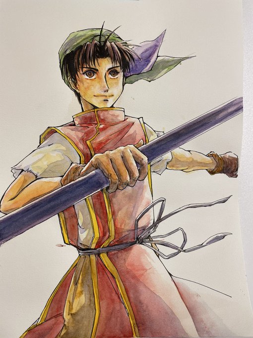 お絵かき初心者未満だけどようやく初めて最後まで描ききったうちの坊っちゃんシェントゥを良かったら見てやってくれくだされ…!