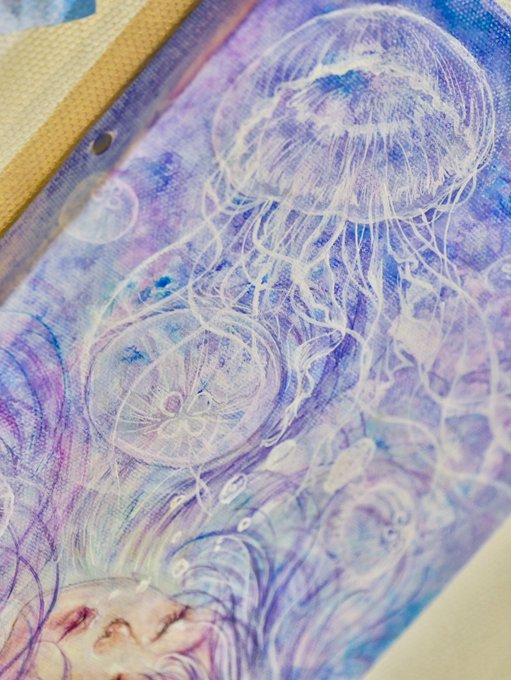 実はこんな雰囲気の夢を実際に見たことがありまして。手描きアナログ原画としては、こんなに海月ちゃん描いたのこの絵が初めてです。今後きっと増えていくよ。