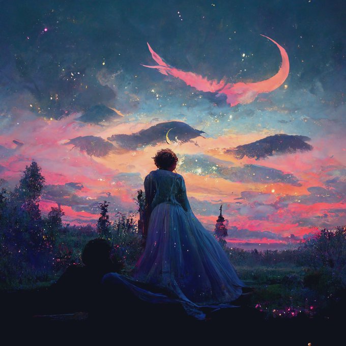妖精王と黄昏空、書いて😡って頼んだら滅茶苦茶いい感じの書いてくれてニコニコしたやつ