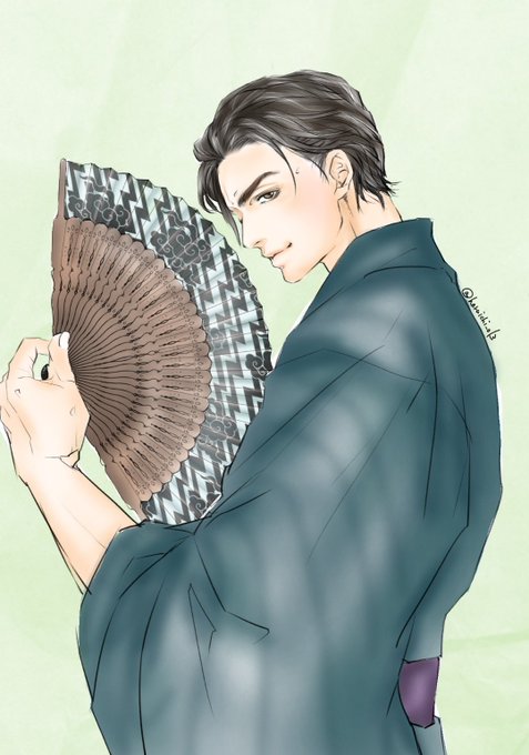 かっこよすぎて私もう語彙力壊滅爆破、、、。背景は敢えて一色にした方が法正の素敵さが引き立つかなと🤔着流し(?)の柄が描けるほどのスキルがないのが切ないです、、、、