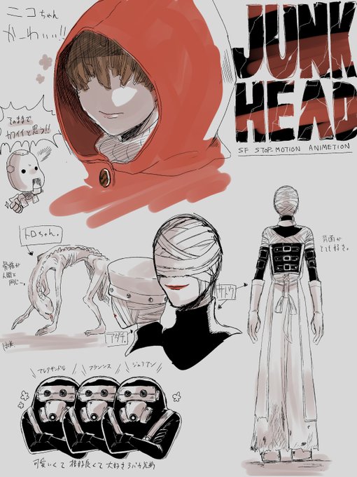 『JUNK HEAD』見て描きたくなったキャラ達。鼻のない造形って難しい。 手にとってじっくり眺めたい造形やデザインの子ばかり。