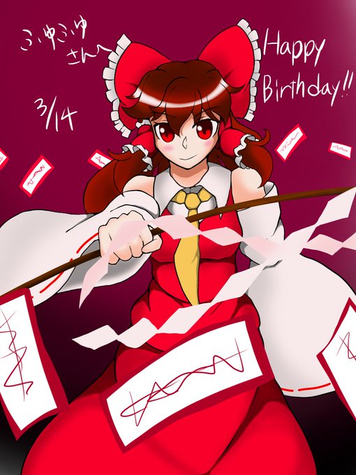 ヤタさん @tripleface2 より私の大好きな霊夢さんのバースデーイラストを描いて下さいました😭🙏✨✨✨