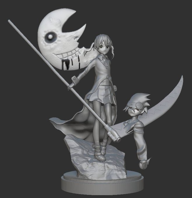 ソウルイーターから マカ&ソウルのデータ完成しました✨造形時間は約3日、大鎌の作り方がよく分からなくて微妙なものになっちゃいました( ˇωˇ )キャラの造形もっと頑張ろうと思います💪