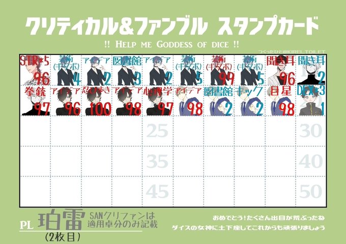 今回の自探索者の観世音寺 史隆です! よく頑張りました…!! 今回までのクリファンも合わせて!
