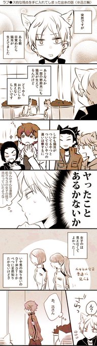 猫耳が生えてる出水くんと生えてない三輪くんと迅さんの漫画(※迅三輪風味)(※下世話)
