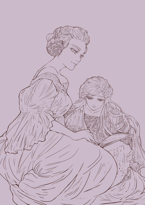 寄稿したエルヴィーラお母様とロゼマちゃん と、線画。服のシワ消してしまったので供養