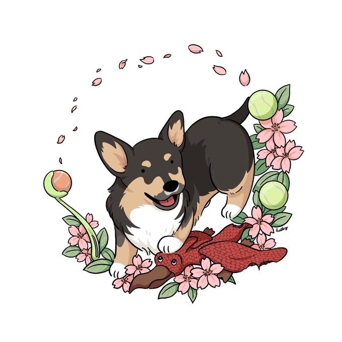 Genji and his cherry blossom themed wreath as a nod to his Japanese name 🌸. That pterodactyl toy was his first ever toy and chuckits and tennis balls are his faves now.