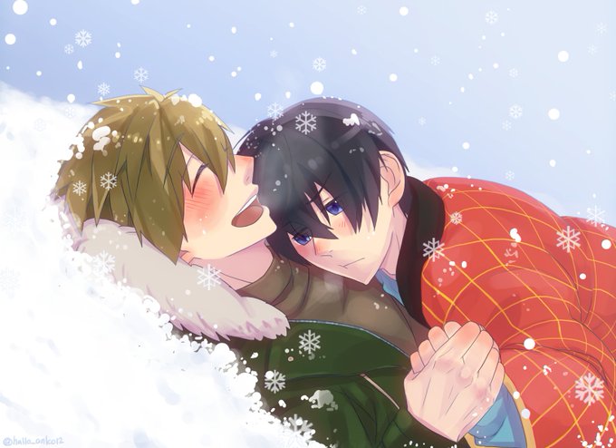 #遙と真琴深夜の60分一本勝負 お題「雪の日」より、積もった雪に飛び込む遙と真琴。 寒がりなのに雪を見ると元気になる真琴わかいいw