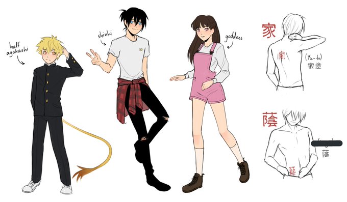 I figured i could post this now that their designs are out. A while ago i drew a sheet of the trio in my role swap fic (wip) just for fun~ It's not completed yet, as it's missing Hiyori's second appearance and Yato's weapon forms but it was fun deciding what his names would be!