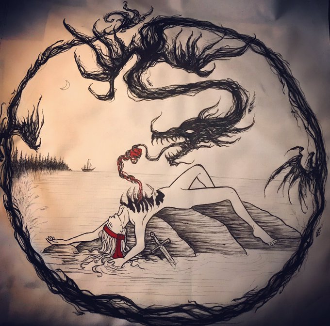 #ink #inking #inktober2019 #dragon #shadows #landscape #fantasyArt #DarkArtsMonth