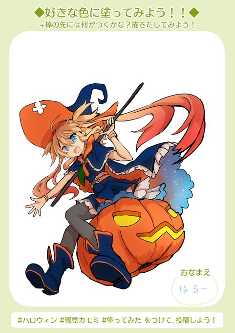 #ハロウィン #鴨見カモミ #塗ってみた ステッキ書き込む時間足りなかった、、、 鴨見先生の絵は毎回塗っててたのしいんじゃよぉ