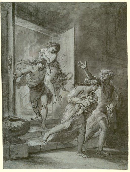Jean-Jacques Lagrenée, called Lagrenée le jeune, Unidentified Historical Subject: Six Figures Fleeing a Burning Building; verso: Head and Shoulders of a Man, 18th-19th century https://t.co/A8kpZhtHH8 #calledlagrenéelejeune
