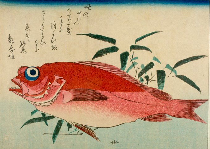 Large-Eye Seabream (Mede tai) and Bamboo Grass (Sasa), from the series A Shoal of Fishes (Uo-zukushi), Utagawa Hiroshige, 19th century https://t.co/apbjoqaBAs #harvardartmuseums #utagawahiroshige