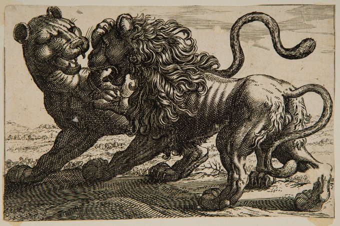 Antonio Tempesta, A Lion Fighting a Lioness, 16th-17th century https://t.co/I9jfy0rQ7R #antoniotempesta