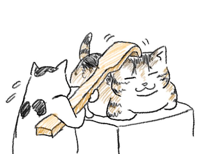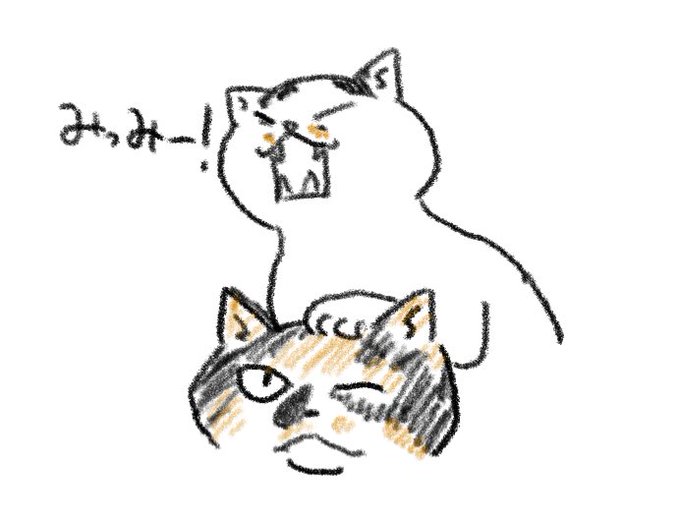 兄弟猫のフー(前髪おでこ)とライ(灰白ハチワレ)と飼い主です ヘッダはちゅき様@chupiy