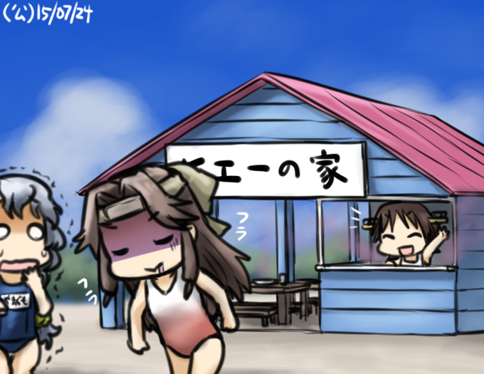 #艦これ版深夜の真剣お絵描き60分一本勝負 #艦これ版真剣お絵描き60分一本勝負_20150724 海の家!