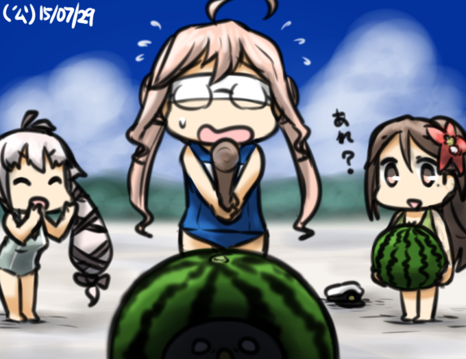 #艦これ版深夜の真剣お絵描き60分一本勝負 #艦これ版真剣お絵描き60分一本勝負_20150729 スイカ割り!