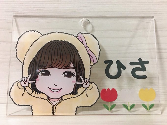 和田まあや推しのひささんの名札を作らせていただきました(^^)アクリルパネルで透けててキュートです。イラストは(実は?)少し前の画風です。こっちの感じもやっぱり描いてて楽しいし、可愛く描けてるなって自分的に思ったりもします。髪型、大きな目、唇に輪郭とらしさを出せたかな〜♪