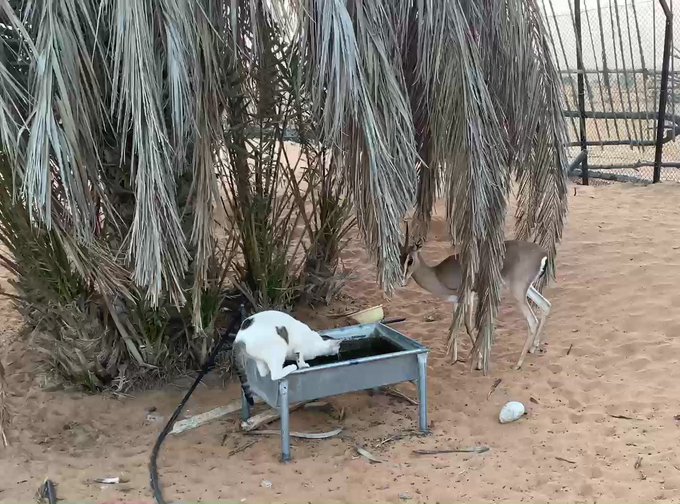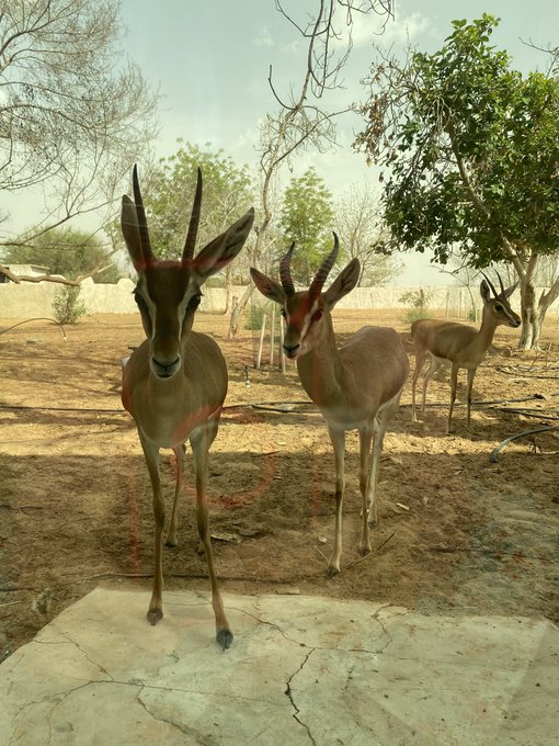 今朝はヒト騒動あって、朝早く庭にひとりでいたアーイラさんに違和感。他の皆んなは?と言いながら、一緒に女子たち探しにいったら、そこに♂のガゼルがいて??? どうやら野生のガゼルとアーイラさんが、柵越しに男の闘いをし