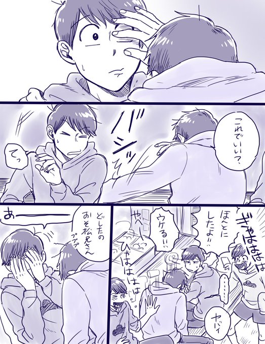 ④完。2人の間にそういう感情がなかったとしても三男にちゅーされるのは色々と破壊力があるんじゃないかってのと六つ子に巻き込まれるチビ太が描きたかったのでした…