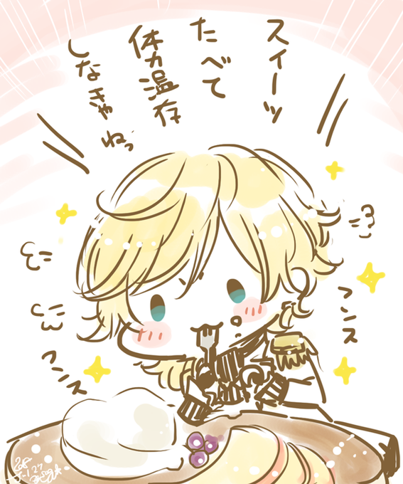 スイーツで体力温存を図るシャルくん