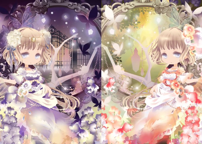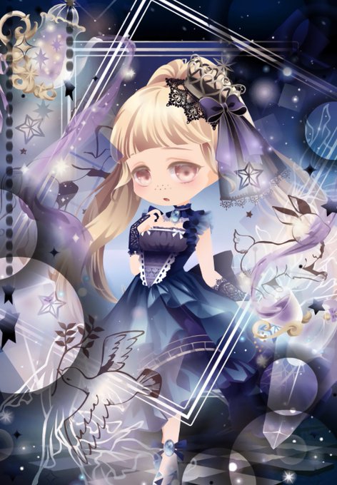 見上げる皇姫のロングヘアでコーデ 1枚目はフローライトの泣きぼくろを使って口元薄くしてみました。口元変化がズレてしまうのは残念ですね。 #ポケラン #ポケットランド #セルフィコーデ